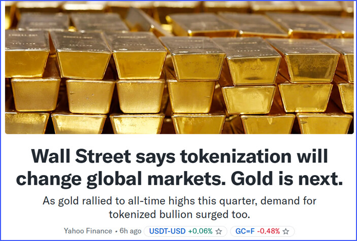 Oh, I feel so much better now, I thought this tokenized gold would be backed by paper, or crypto. Securely held? Like this pre-33 $20 gold piece I’m rolling across my knuckles? Old coin gold, 90%. Constitutional money.