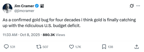 I did my annual trip to Brien Lunden’s New Orleans Investment Conference. The Boom-Bust Panel shared with Peter St. Onge, Jim Iourio, and Jim Bianco focused on the AI bubble while the audience was mesmerized by Peter’s shirt. I also ran a 45-minute workshop that ended three hours later with almost nobody leaving. What the hell topic could do that? Child Trafficking and Geopolitics, of course. The presentations at the meeting are fun and the food is great, but I go to hang out in the green room and chat with old friends and meet some new ones.