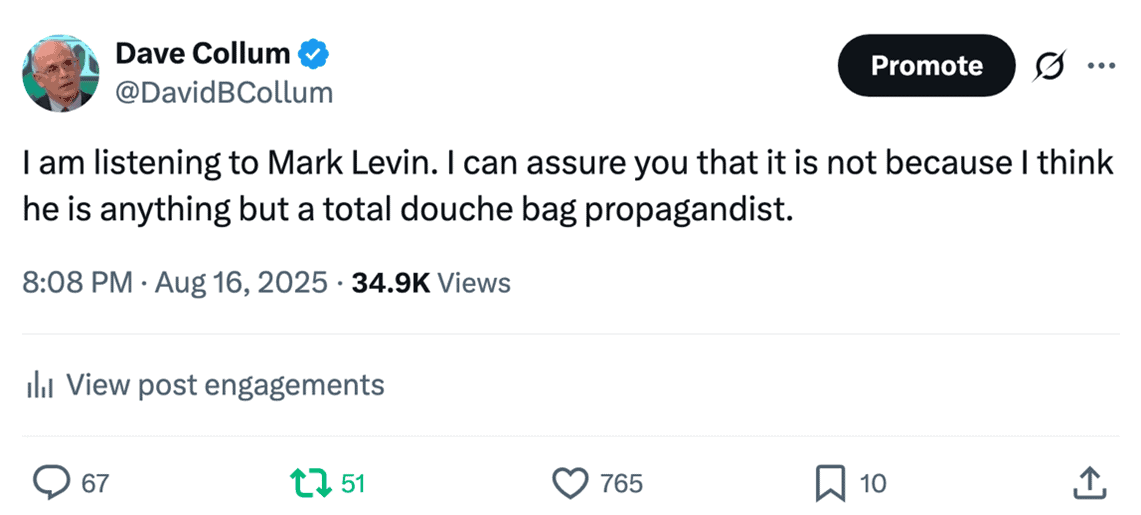 Wait! What? The Conclusion? That’s it? Yes. I warned you. That is all I have this year, because I am at a fork in the road. Several times I decided to give up and simply leave everything on the cutting room floor (quit). The entirety of 2025 was about Trump; I lost all interest in that plot. Well before my Tucker Carlson interview, I watched battles between pairs of so-called thought leaders and explicitly pondered how not to ever get sucked into such screwed up fights. Then I found myself brawling opponents with far greater commitment to fighting than I could ever muster. I’ve given those same motherfuckers enough material herein to get pissed off yet again. Swing away, but you guys won’t lay a glove on me, because I will be a no-show to the fight.