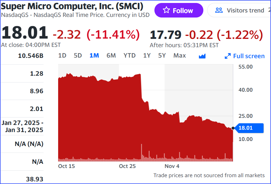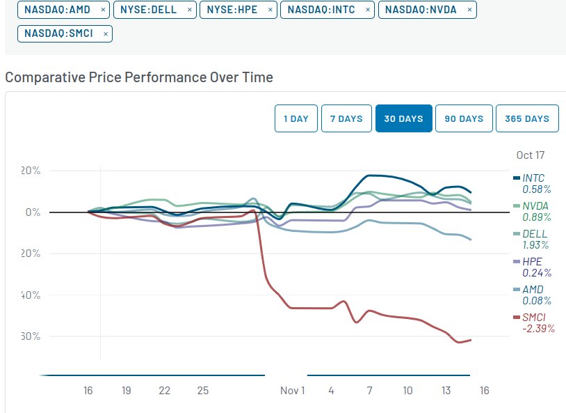 That’s really weird stock chart for 2024. Supermicro sells motherboards and other server equipment but no AI cards.