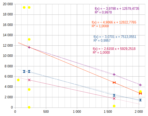 But, instead of dealing with the differences, a linear regression seems to be more useful. However, the Pythagorean is quadratic, so we take now the square.