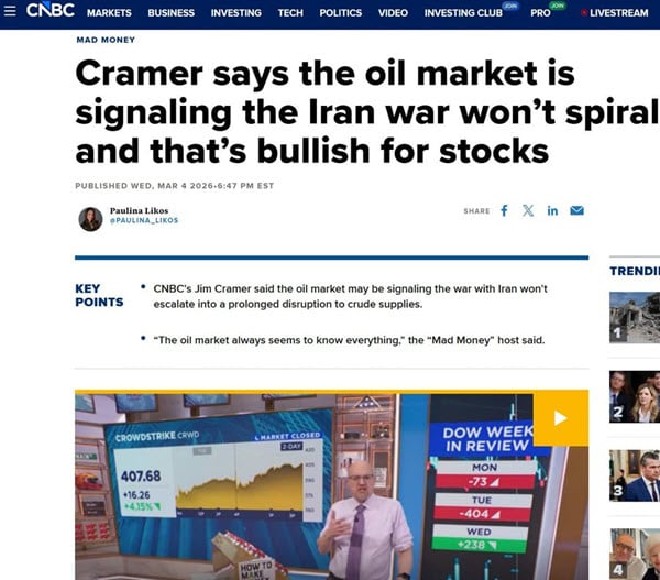 Is everything fine as Cramer says? Not based on the actual facts as we know them from the Middle East. Will peace break out soon? We have no indication of that; in fact, both sides are saying “prepare for a long fight.”