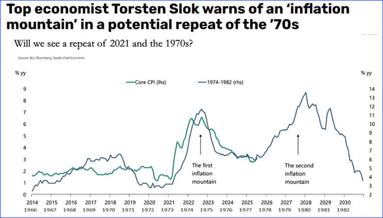 An energy shock at this point will tip the world back into an inflationary shock, leading to a dreaded ‘double hump’ inflationary outcome -exactly the same as in the 1970’s – 1980’s.