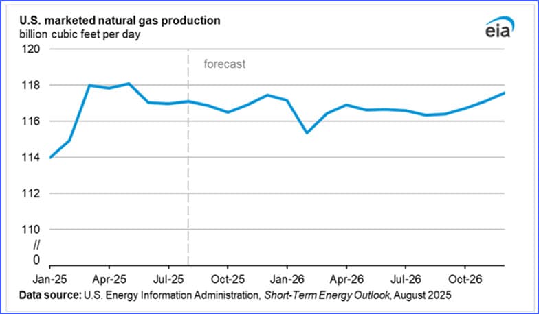 Now wander with me over to the EIA’s projections of US NG production over the next year.