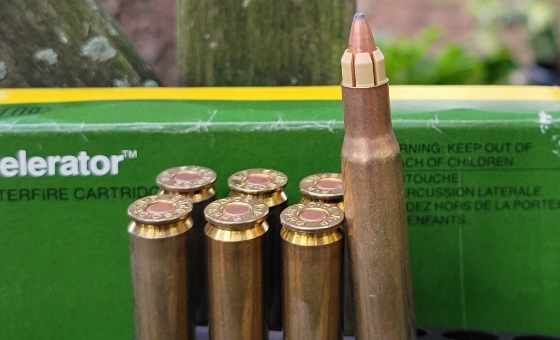 This a 30-06 cartridge with a 22 sabot projectile. It was produced until the just after 2000. REMINGTON'S PAST MYSTERY CARTRIDGES: THE .22 ACCELERATORS - The Classic Woodsman