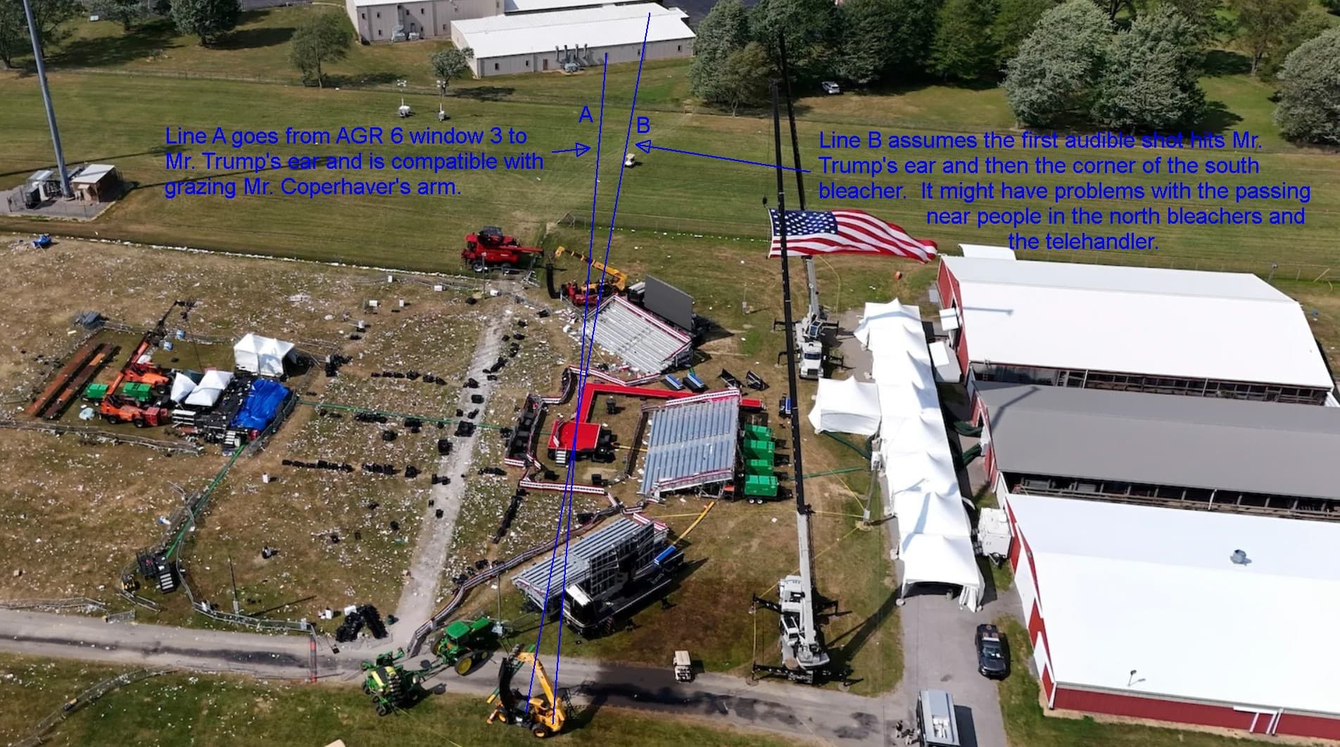 If I remember right flamecensor believes that the first audible shot hit Mr. Trump’s ear and then Mr. Copenhaver’s arm, and I am inclined to agree now. We disagree on where that shot comes from.