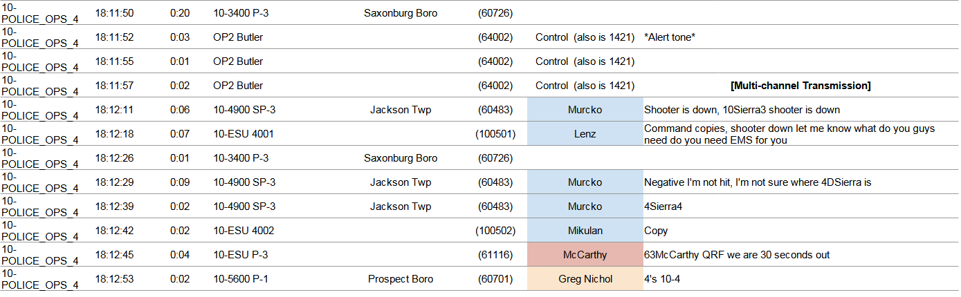 Q: Did you hear anyone say anything on OPS 4 about someone on the roof or doing anything from the time period of, let’s say, 1802 to the shots fired at 1811?