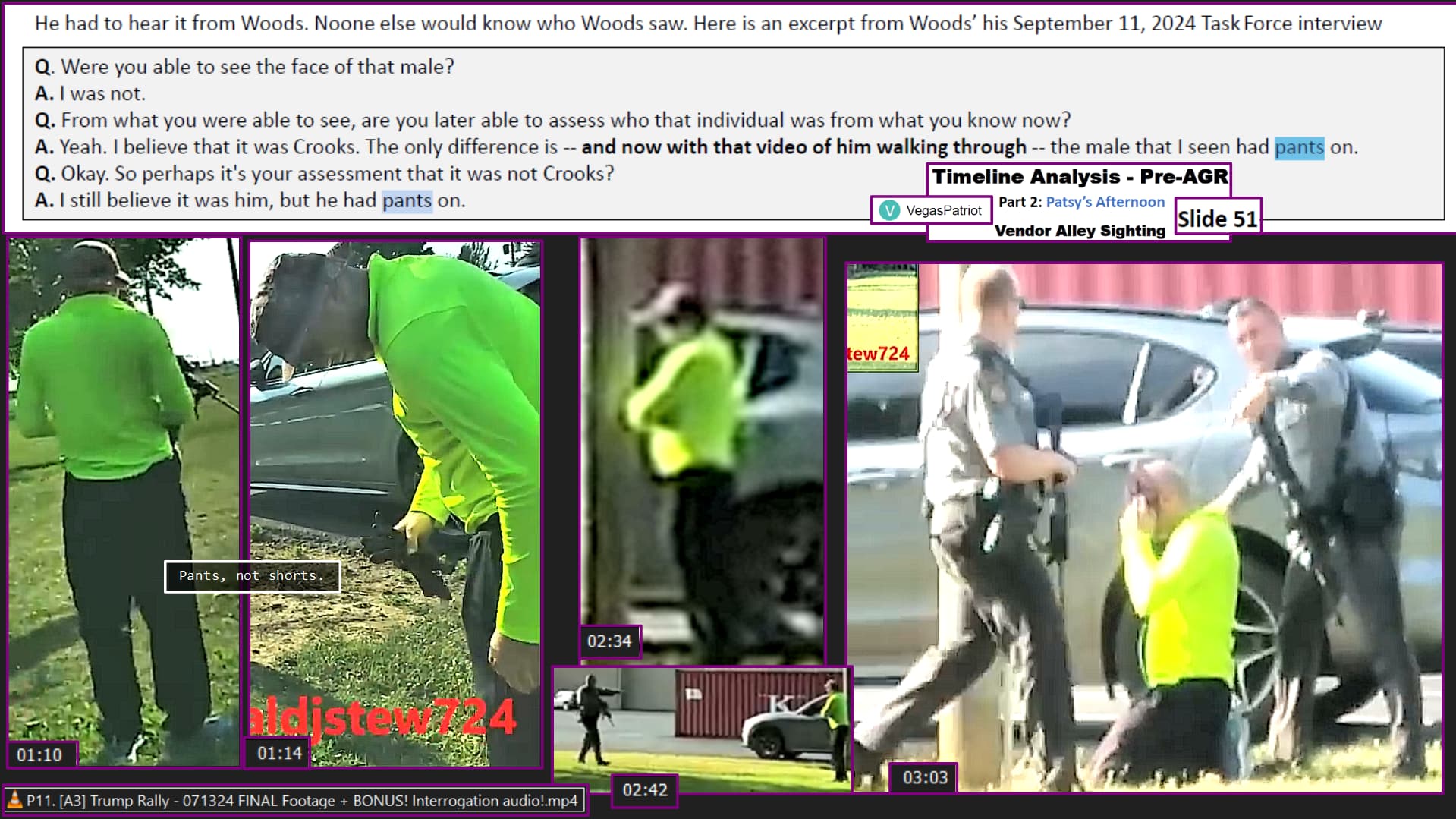 I’ll rewatch the PBS broadcast to compare, but I’d continue to believe that Trump was still dangerously standing when Shot3 flew inches east of his neck, or chin.