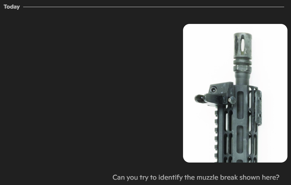 While many similar devices share this three‑prong configuration, the specific manufacturer or model can be hard to pinpoint without additional markings or more angles of the firearm. If you’re looking for more detailed identification—such as confirming if it has any unique design characteristics or if it has features that might influence its performance—it might help to examine the device for any branding, part numbers, or unique design cues.