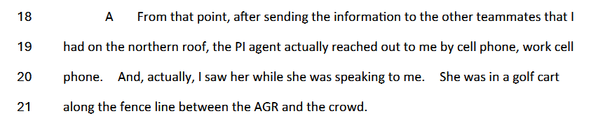 He looked ~5 meters east, and ~20 meters south of the door on AGR6’ southeast corner door. That was the busy door, with many cops around it. And the phone looked aimed into the distance north.