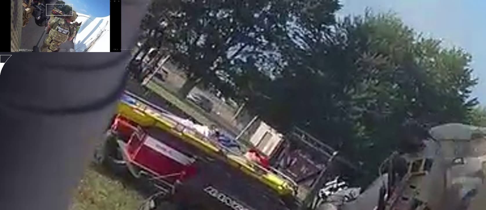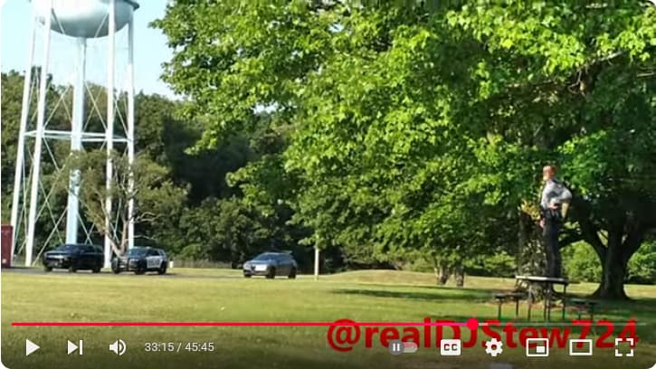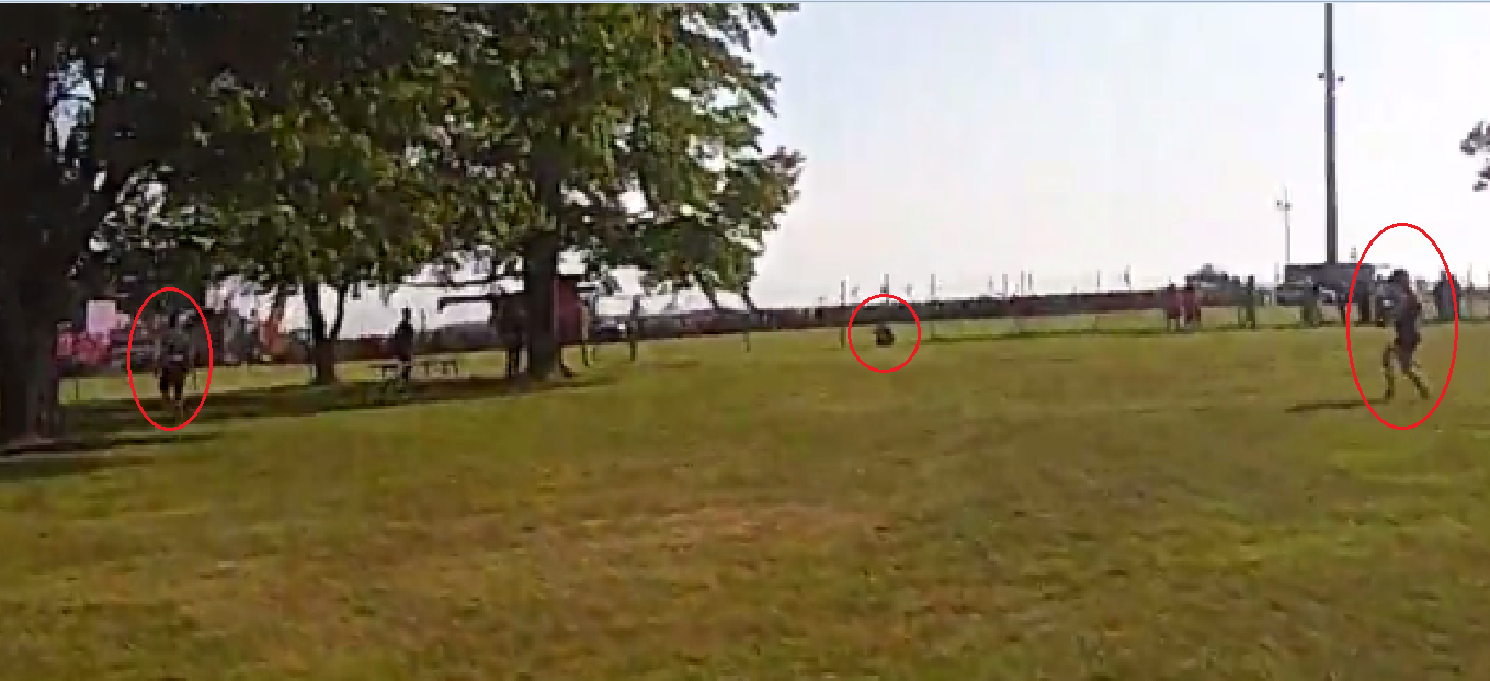 Mmm, we see Collins retrieving his rifle from the backseat of his cruiser but that’s directly at the end of the shots fired. Perhaps this is an overlap of multiple shadows or like a shadow puppet, where a shadow can be made to look like something else. Hmm… Did the trooper on the picnic table have a pistol or a rifle?