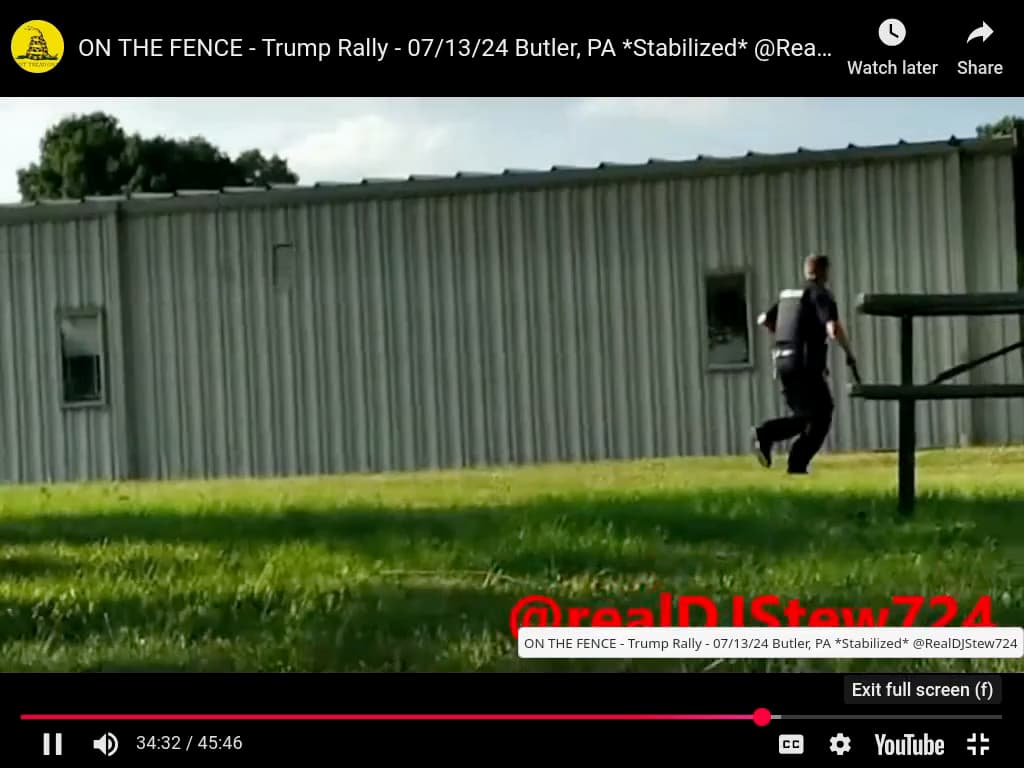 One big problem I have with Crooks taking shots 4-8 is the question of where shots 4, 5, 7 and 8 wound up. If you look downward from Crooks’ position aiming as close to Mr. Trump as possible (keeping in mind he’s down on the ground at that point), if you miss the people in the left hand bleachers, you are going to hit the stage, the lectern or someone in the right hand bleachers. It would be hard to imagine all the other shots flying so high that they miss everything, and it’s not like there were lots of holes in the right hand bleachers.