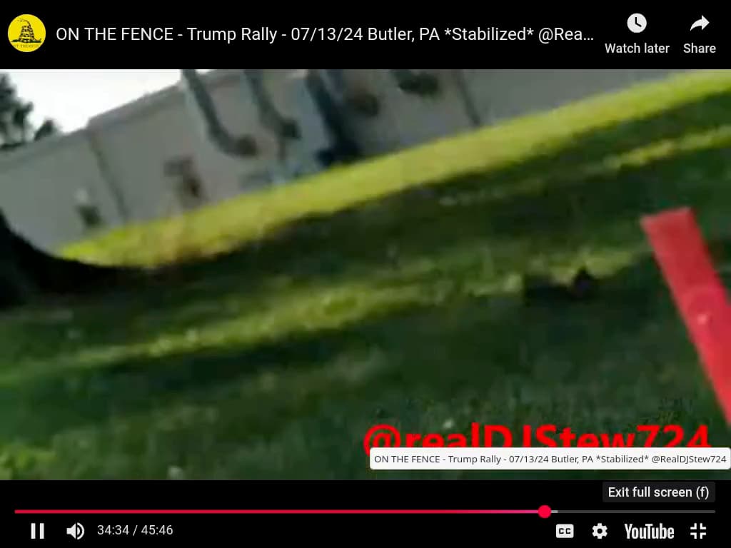 And Copenhaver’s recording suggests a line throught Trump’s ear, to the building, that may not end, North, with the ‘dead body’ roof spot.