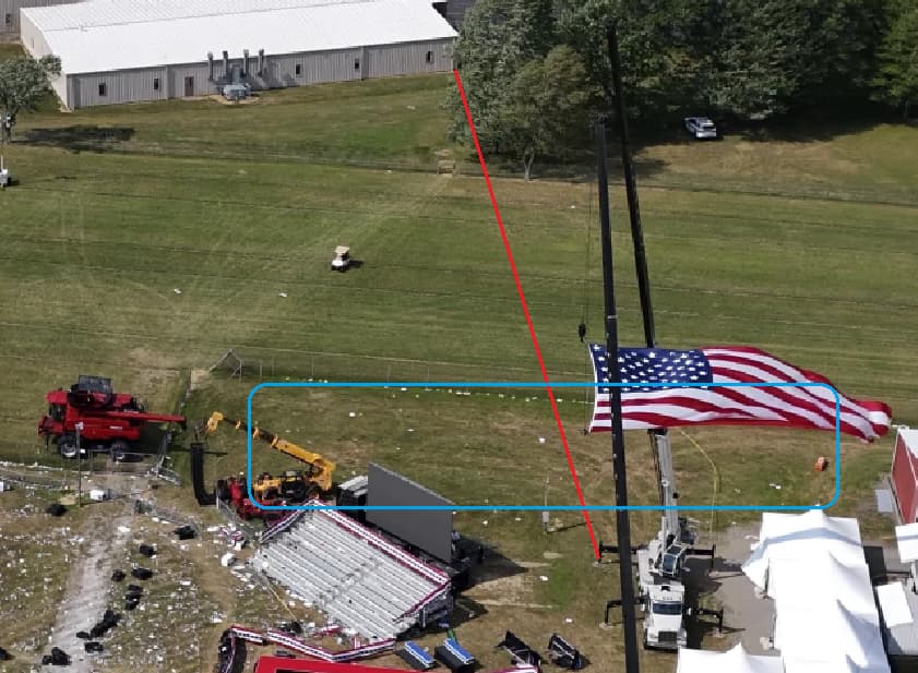 This is about the wind call. First they said it was a windy day. We also saw the big flag twisted. But at the moment of shooting there was almost no wind, and it was toward rather south. So it is weird how Trump’s right ear was snicked.