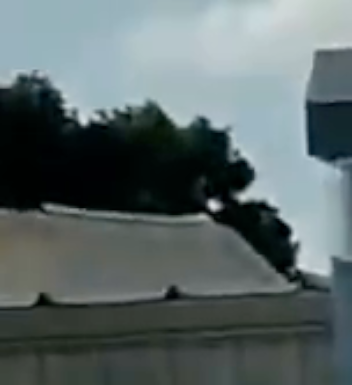 3 or 4 other frames, just as stage shots begin, have me imagining Danny DeVito hugging/riding what looks like a type of white ‘bean bag’. Did Cullen claim that a ‘mattress’ was on the roof?