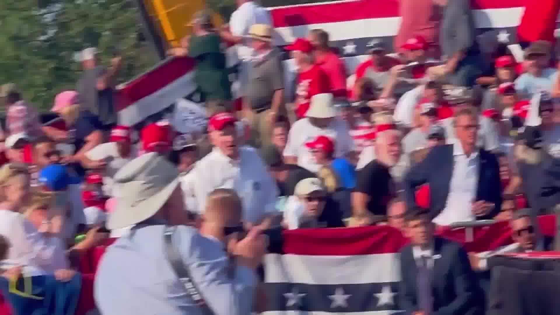 1] Before the 8 audio shots were fired. He, and another agent were recored crawling along the fence side of Trump podium] of the bleachers stand.
