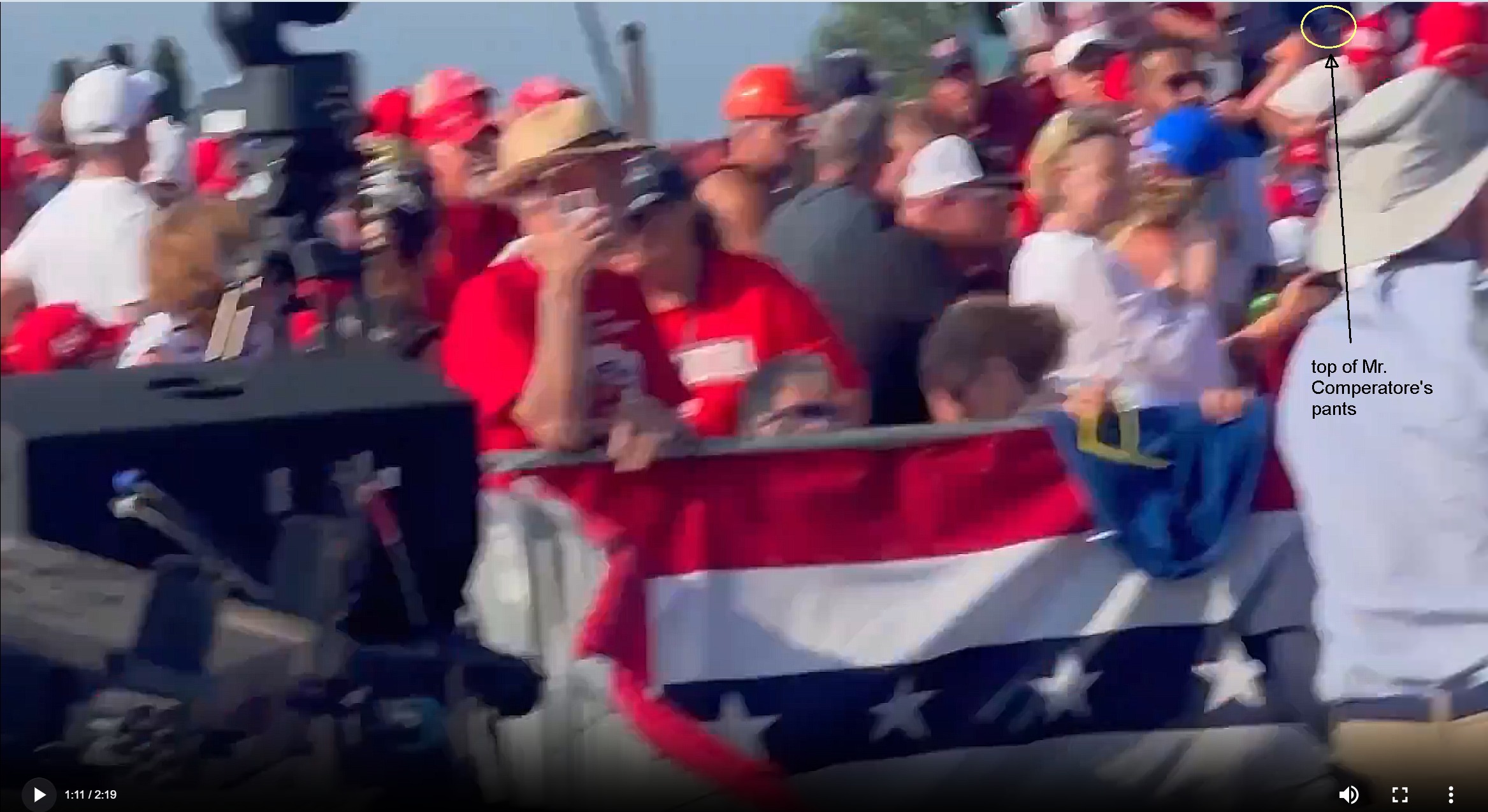 As far as I can tell, there are 2 frames that have Mr. Comperatore, and one that has a bit of his pants. They seem to have been taken between shots 4 and 5 - if the audio of the video and my computer player aren’t playing tricks on me. I’m also including the preceding frame: