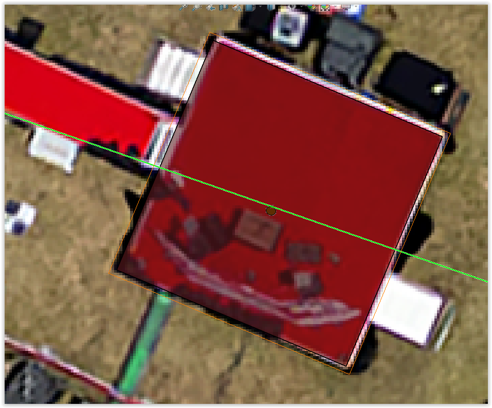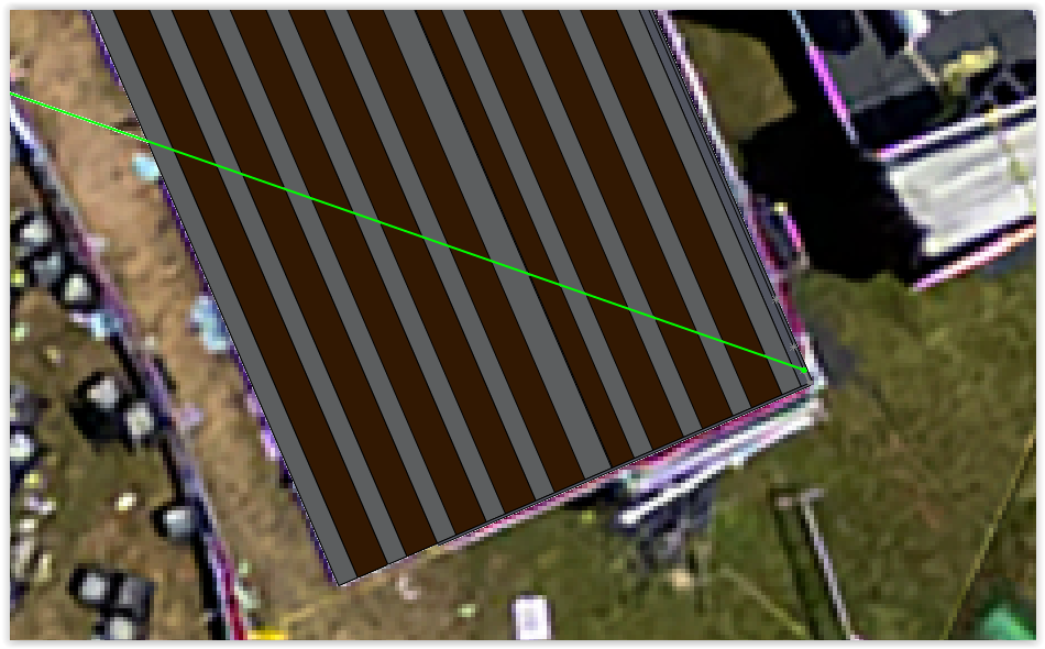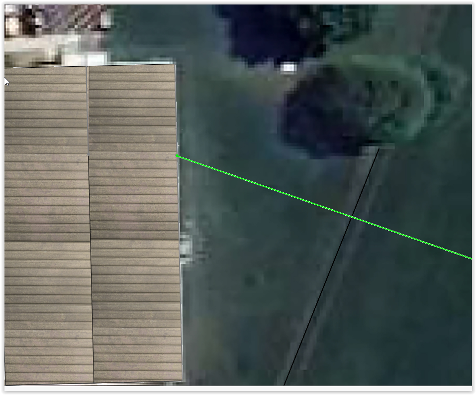 Intersection of black lines show the corner of railings. Red line shows the possible spot of hit.