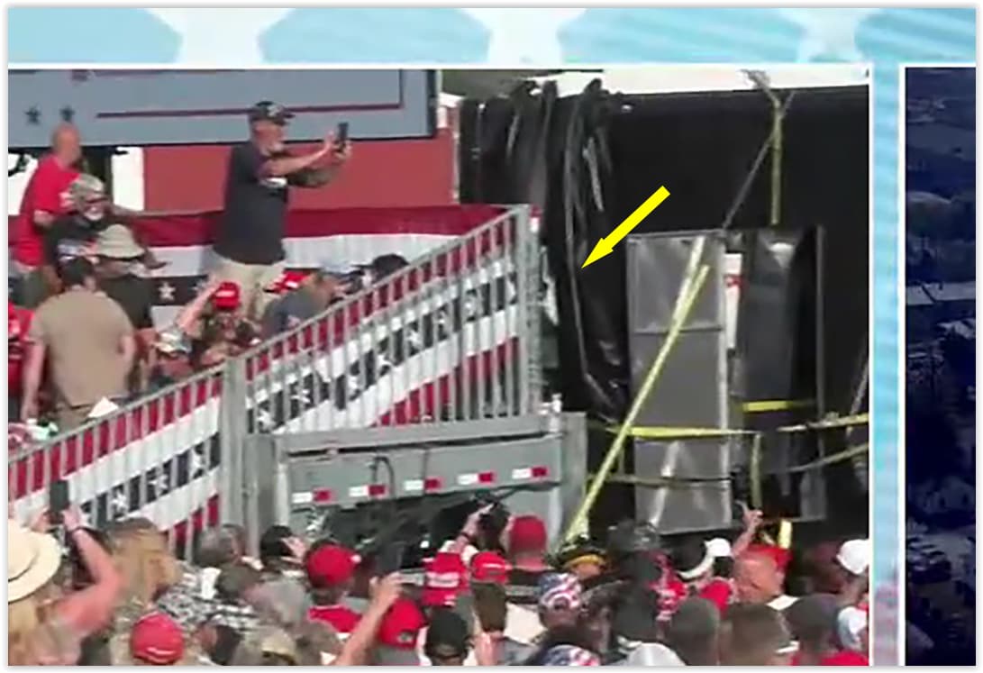 We now know from Mr. Comperatore’s video that Mr. Trump’s ear was pretty much lined up with his edge of the lectern when he was shot. Thus, he was about 6 inches behind the plane marked by the walkway and the yellow line on the picture.