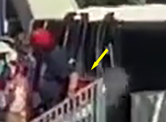 The impact of the bullet burned a mark into the railing, but unfortunately, the video quality isn’t sharp enough to clearly show it. However, if you watch the very long RSBN live footage here, at 6:45:37, you can see the impact mark on the bleachers.