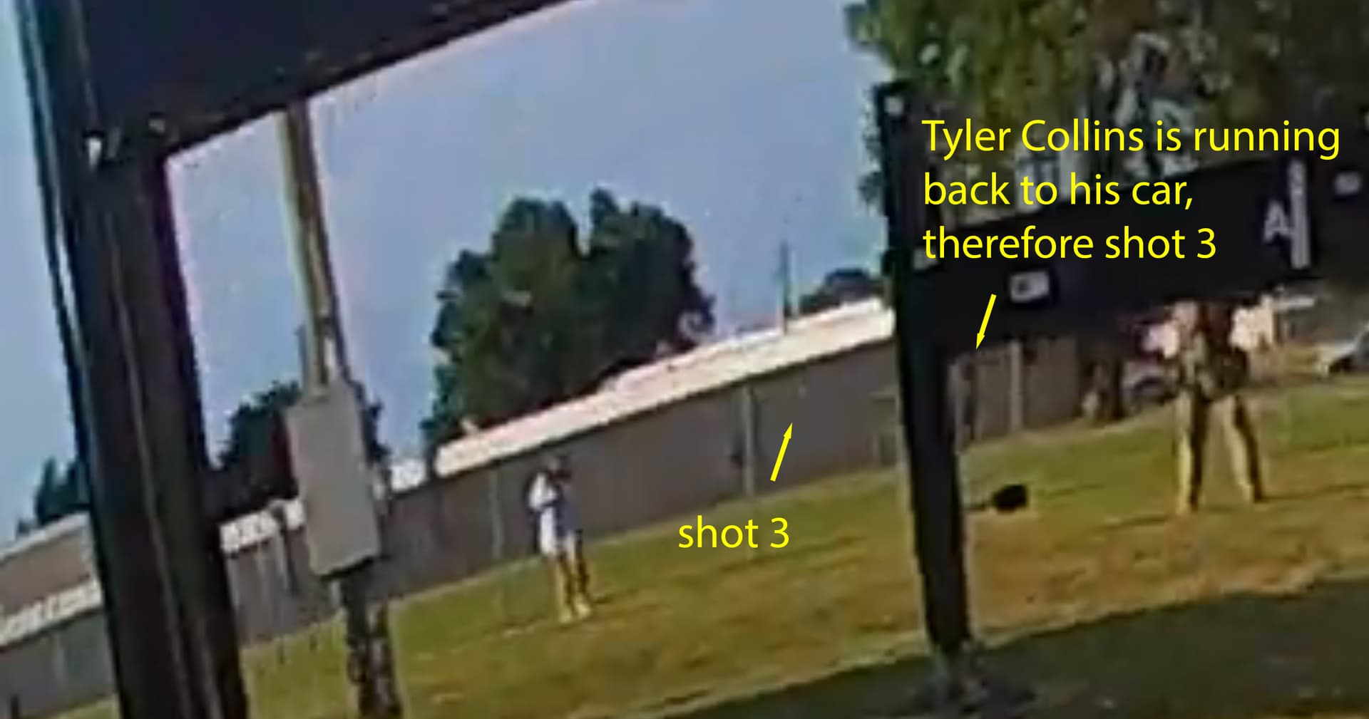 Yes, I wasn’t aware of his name, but since you mentioned it — yes, Tyler Collins is on his way back. We can identify the shot sequence by analyzing the three flag video, where you can clearly see Tyler walking and hear the shots: