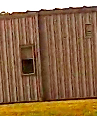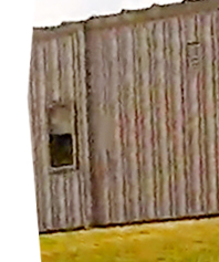 Presence of a gray-colored area interrupting the vertical groove pattern on the wall.