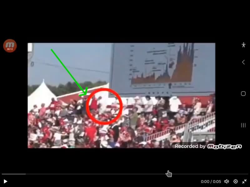 I’m letting myself get bogged down with minutiae like “where was this videographer sitting?” Related: I don’t think John McCollough was the guy at the upper North corner of the center bleachers with with huge hat. He never ducked. John McCollough ducked the first three shots, and I think he was sitting 1 to 3 rows in front of the guy with the big hat.