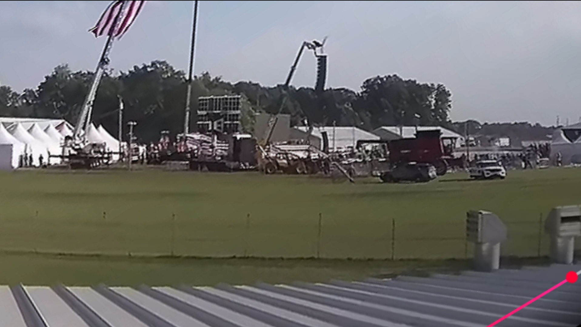 There are multiple video recordings showing that the first shot grazed Trump’s ear, and others showing that the same shot struck the corner of the bleachers. In fact, there is even one video—the newly released footage from Comparatore—that shows both events. If you watch it frame by frame, you can clearly see the moment when Trump’s ear is grazed, followed immediately in the next frame by the impact on the bleacher corner, with debris and smoke visible.