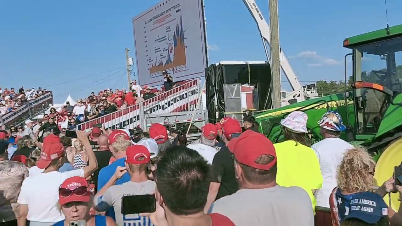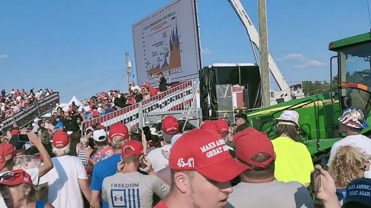 Iâm pretty sure this is one of the videos with AI generated people in the foreground - although itâs not from the media area. I looked at the sightlines - specifically what part of the barn is right behind the left side of the TV and what part of the crane is behind the right side of the TV, drew them on an aerial photo, and found out this video seems to have been taken from crazy far back in the audience - even further than RagTagVagabond.