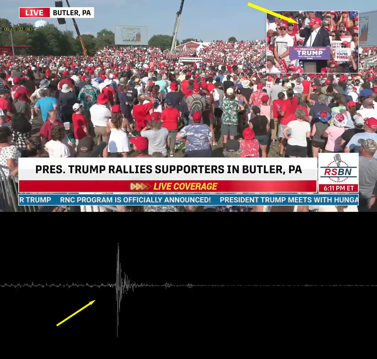 Using the FFmpeg method, I am providing additional evidence for @phiphi-the-frenchie that Trump was holding his ear with his hand when Shot 2 was fired. Here is the RSBN original footage, recorded by an independent camera team. This is first-hand video evidence: