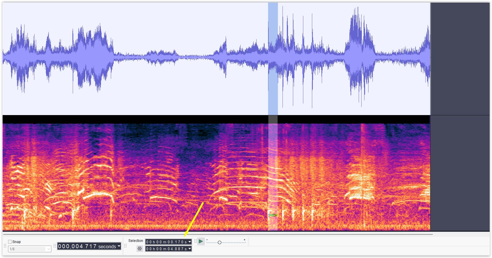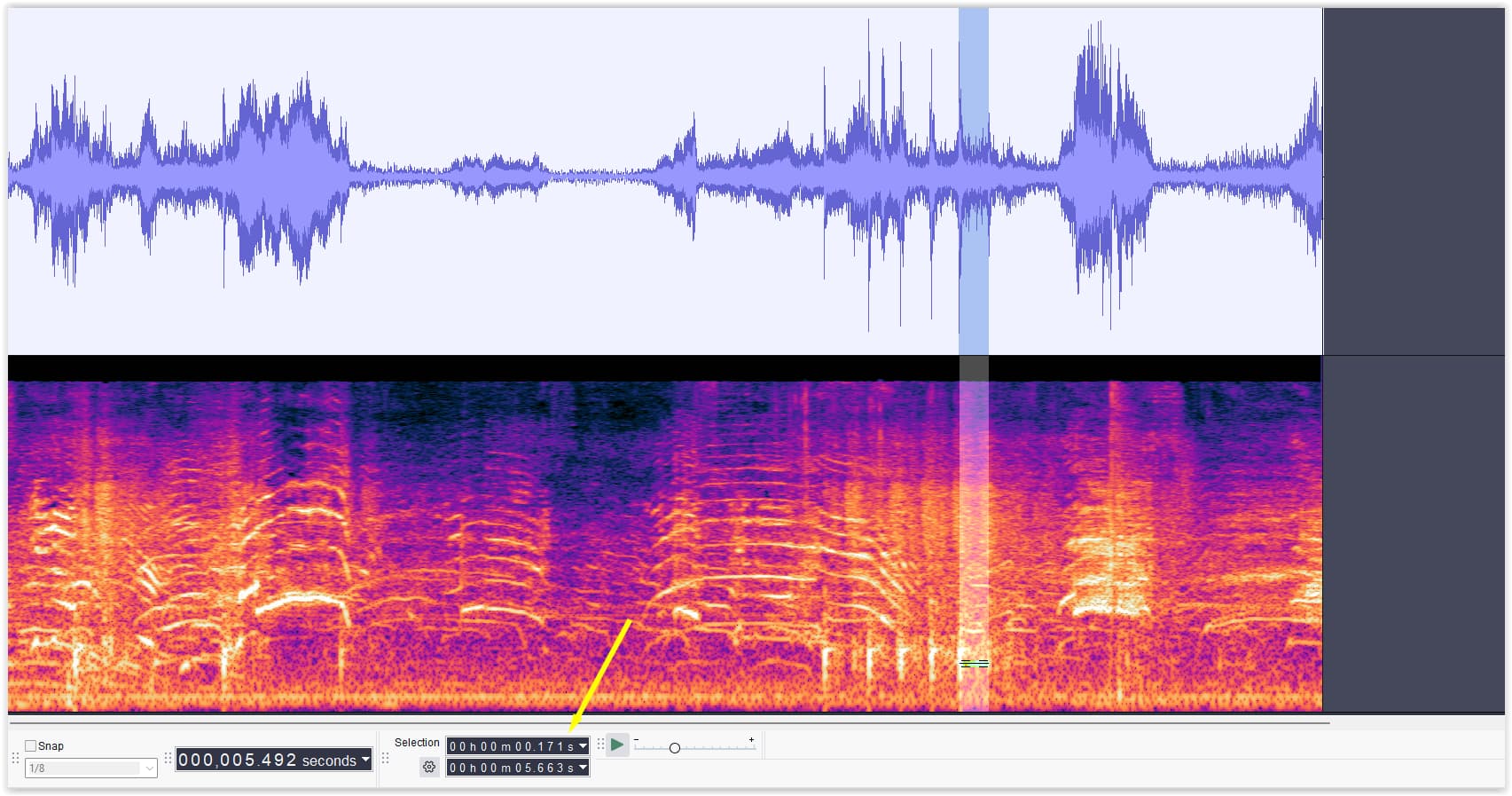 I used a combination of viewing the spectrogram and using headphones with a 0.18x playback speed to listen carefully for gunshot echos and then mark them on the timeline.