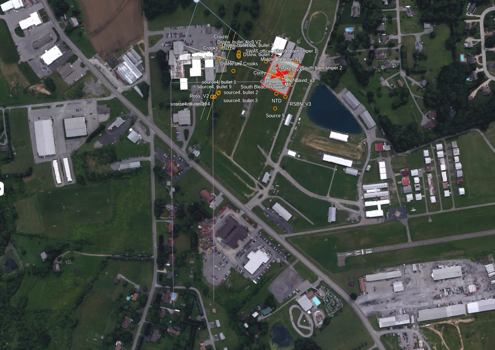 When using a dataset consisting of Ross!, Podium and NTD, I am using boom times for all of the first eight shots. This totally takes supersonic cracks and bullet velocities off the table. Here is the TDOA result: