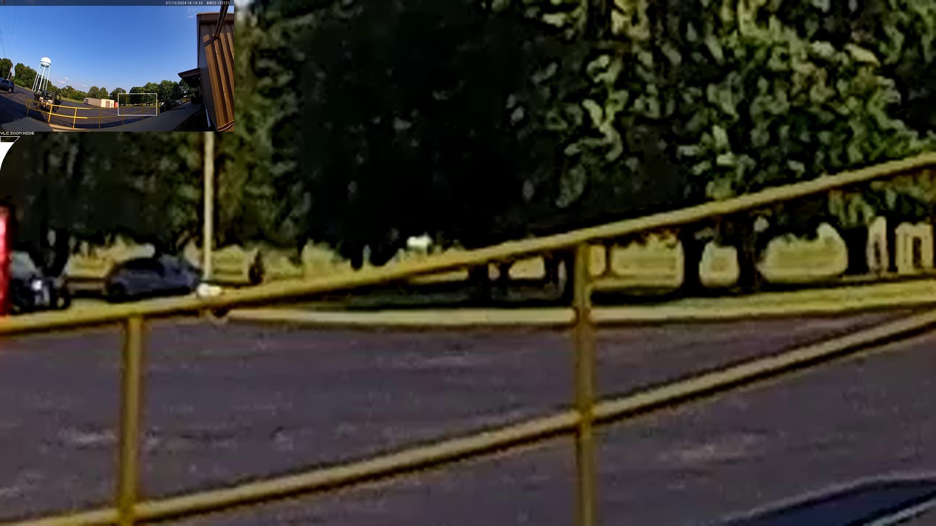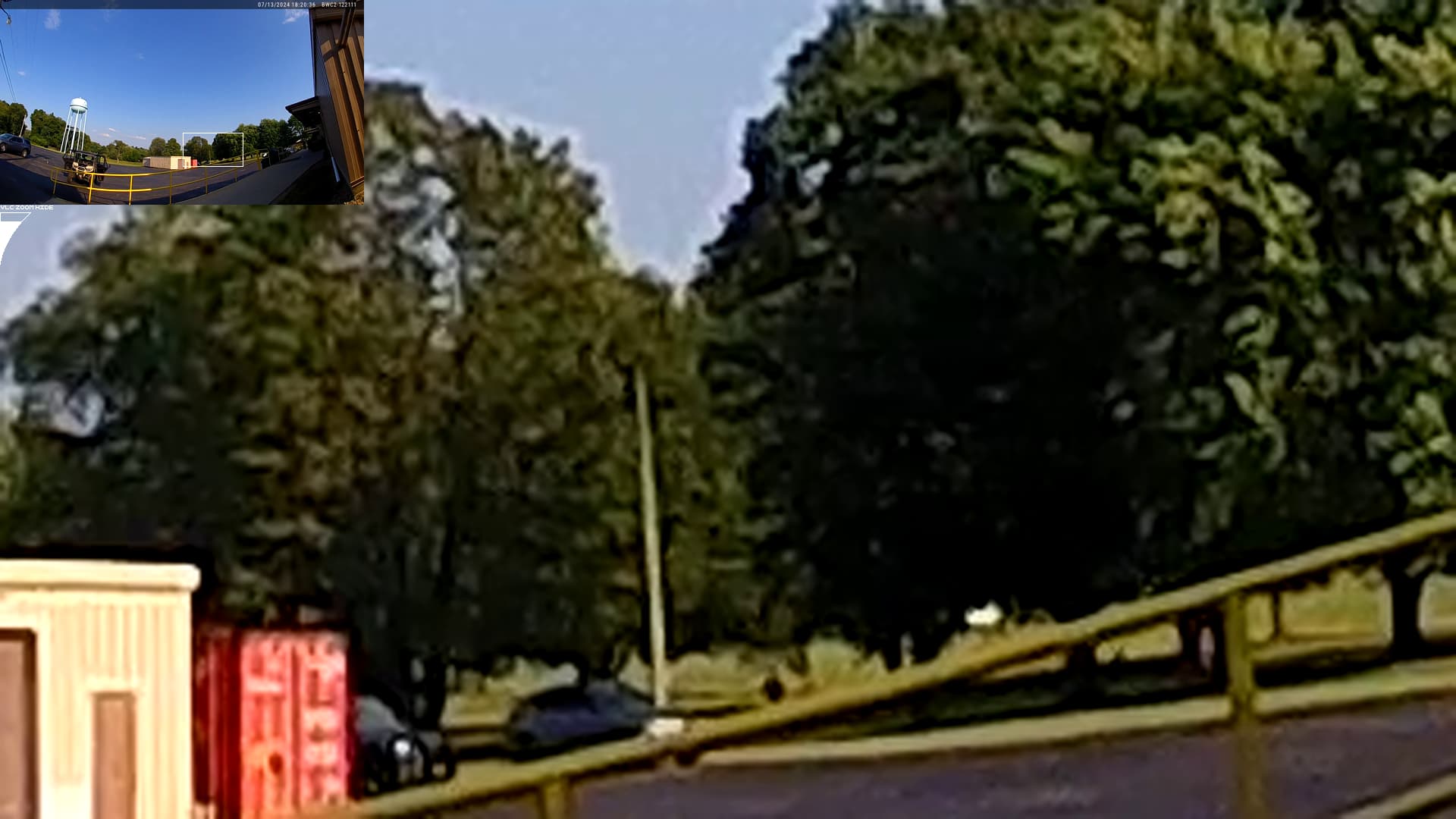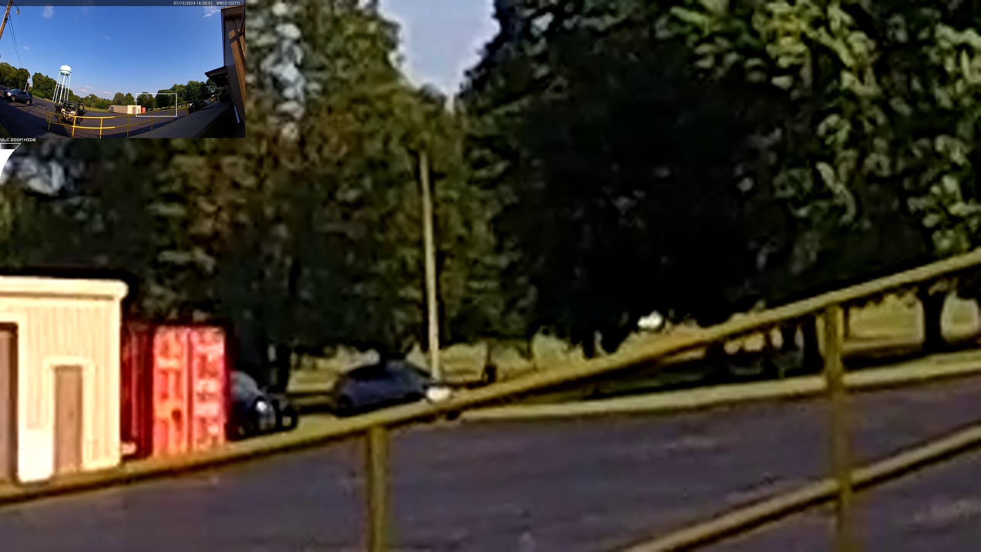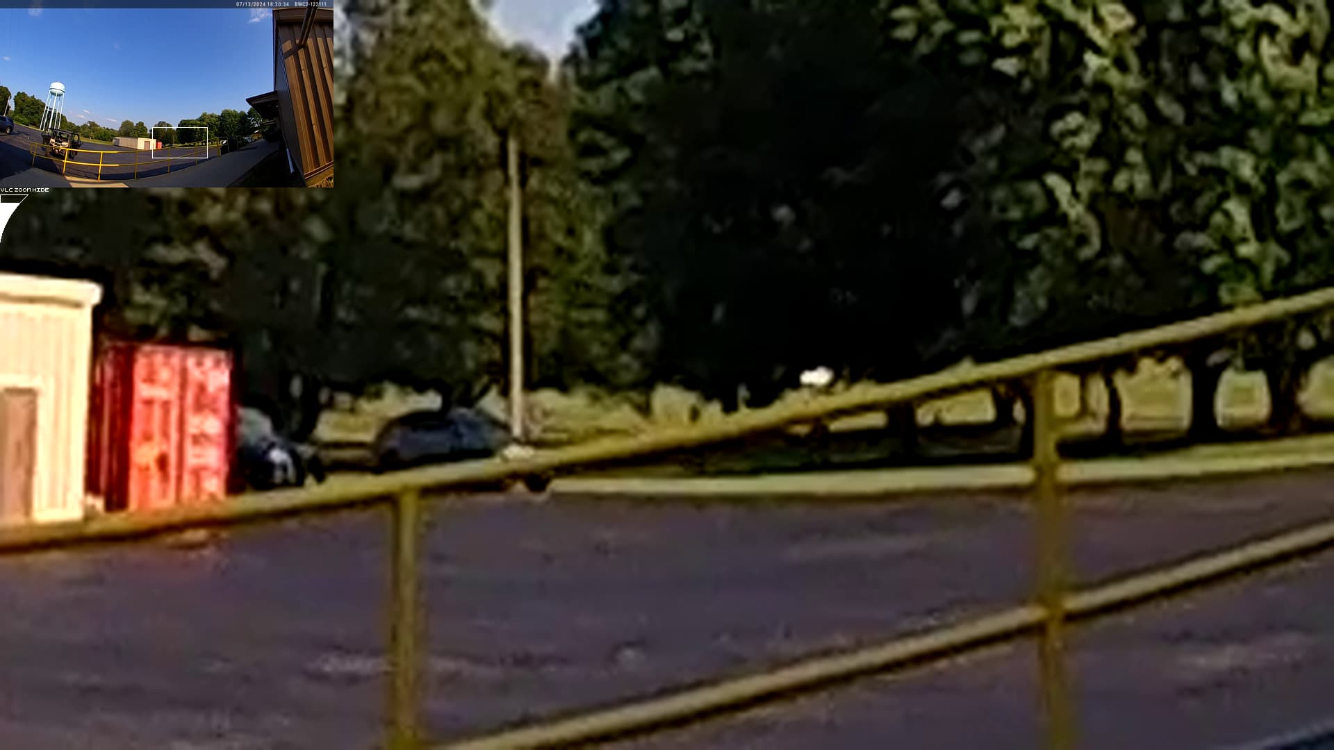The bald man on the roof is wearing a shirt that looks similar, in color, to the shirt worn by the (apparently local) man, who’d been yelling at people, north of the fence, at the rally: