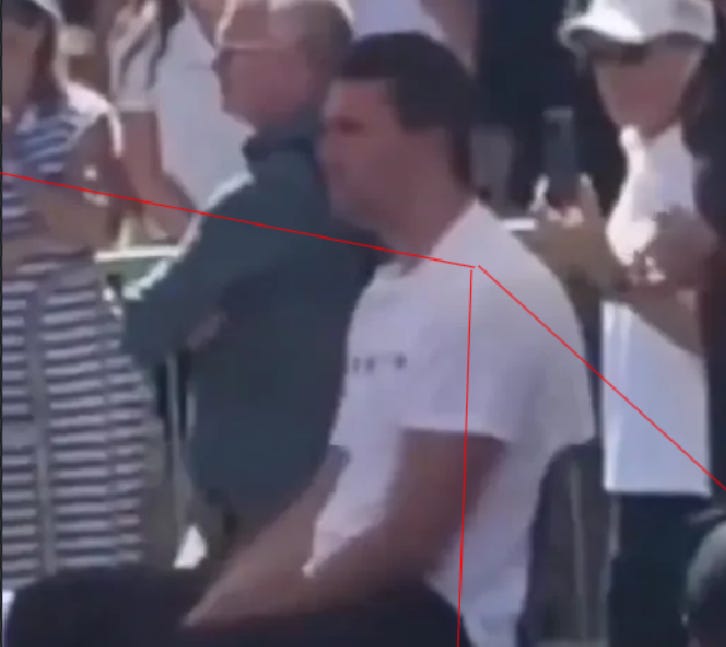 The only possible way for that bullet to have struck Charlie’s neck in such a fashion as to ricochet downward further into his body was for it to have hit his neck at a much steeper downward angle and a much higher off-axis angle.