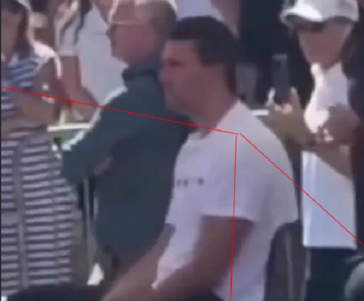 Finally, we dispense with the idea that Charlie was wearing body armor. He wasn’t, and that’s easily proven from existing photos from the event. Even a compression t-shirt arrangement would have left visible lines under his thin-material t-shirt. None can be seen from any angle.