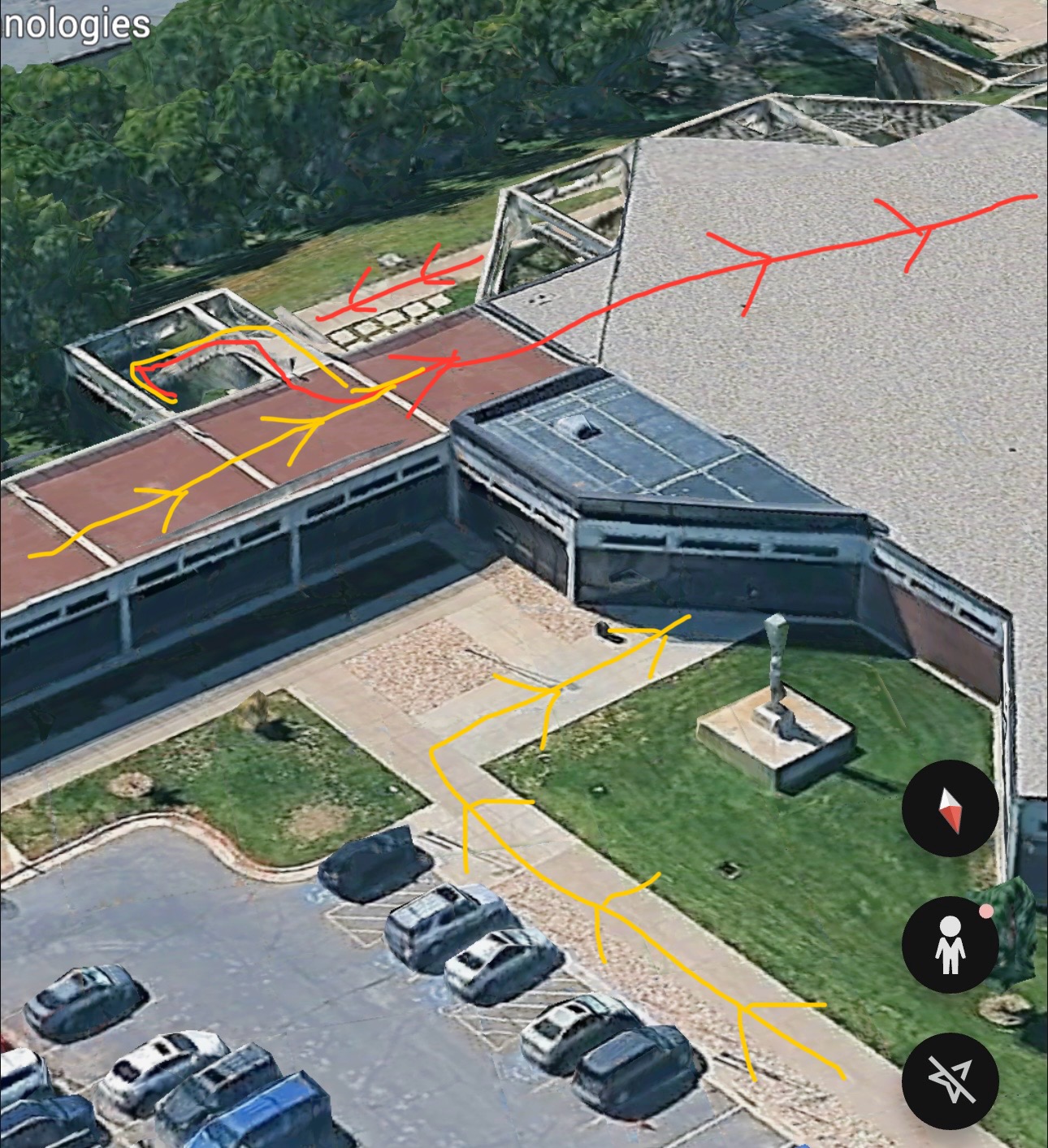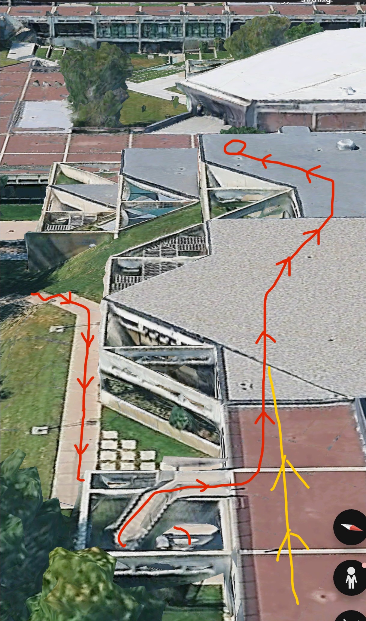 Im not saying that this is how he got there, just showing how easy it is. Im assuming the reason he ran north across the roof and not back the way I have marked is because there were people scattering. Also, you can see that staircase from Charlie’s view.