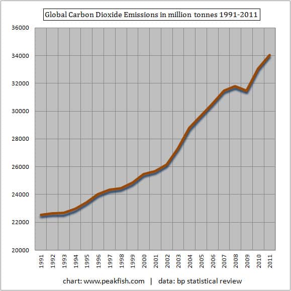The results were unsurprising, and best articulated by the global output of CO2 emissions in the chart below: