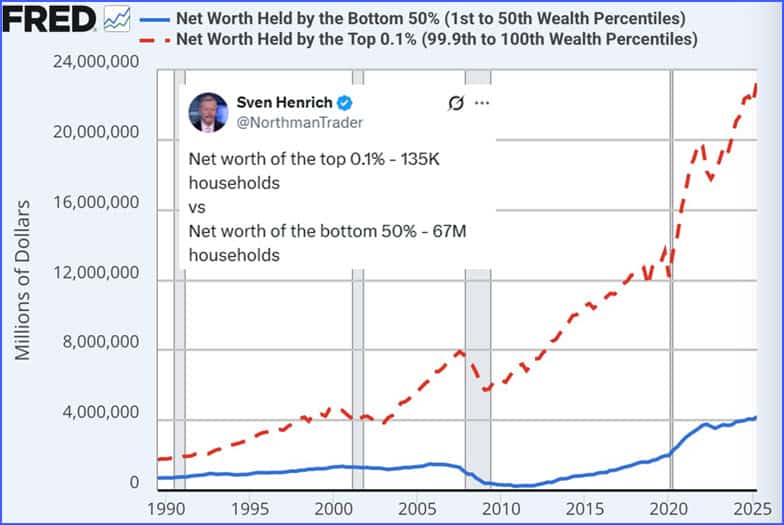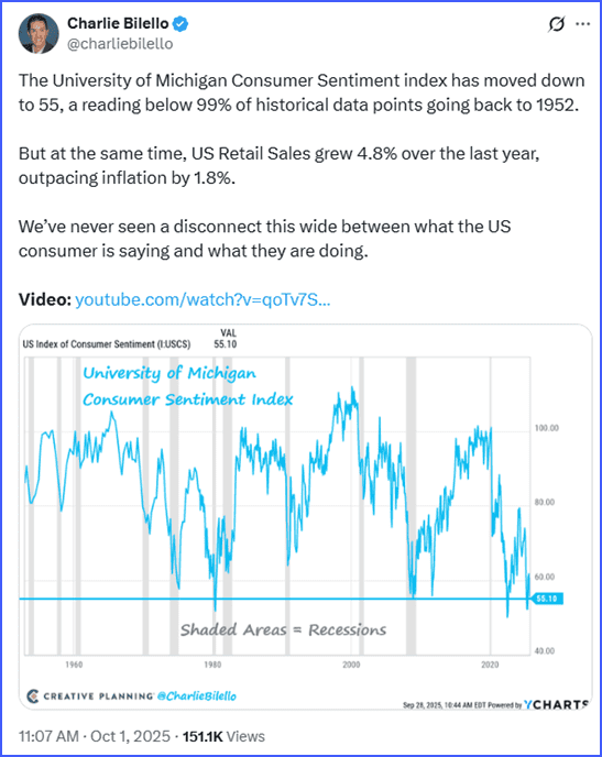 Confirming this idea that the so-called “jobless recovery” isn’t really ‘a thing’ and benefiting everyone, Consumer Sentiment is in the dumps and has been better than it currently is for 99% of all the time between 1955 and 2025: