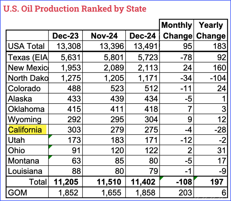 Yes good advice about bringing the right “facts”. Since you did not look at my link I did a snip for your convenience. In my data, we know exactly where it came from unlike the mystery data you presented. While my data is a few months older than yours, at least we know where my information comes from. Then thanks for proving my point with your second chart showing production falling. That’s not happening because all the oil is depleted. If you had looked at my other links, they show unbelievable regulation aimed at shutting off drilled and stopping production. And guess what, it worked according to your data. But just imagine what would happen to your chart showing declining oil production if we were allowed to get the resource and especially go off shore? I stand my my statement that CA has as much oil as TX.