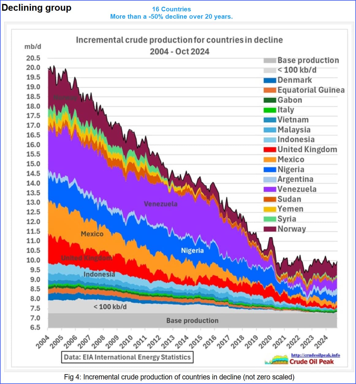 First, here are “the decliners” each of whom is steadily losing more and more output. Note that they collectively put out ~50% less than they did at the start in 2004.