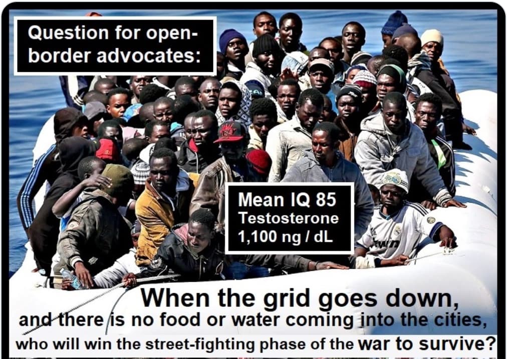 You make an excellent point, however. The detritus which are slithering across the borders are nothing if not battle-hardened and used to confronting death up close and personal. Precious few of us Western men are made of such stuff. The learning curve will be steep, swift, and unforgiving.