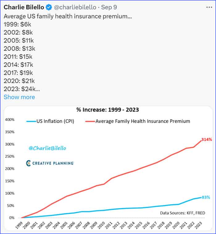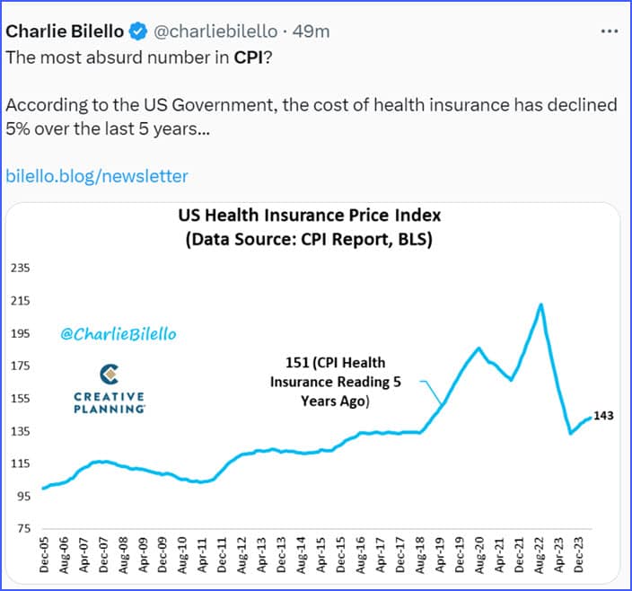The truly infuriating part about this particular bit of news is that the BLS is gaslighting everyone by telling them health insurance costs have gone down over the past 5 years.