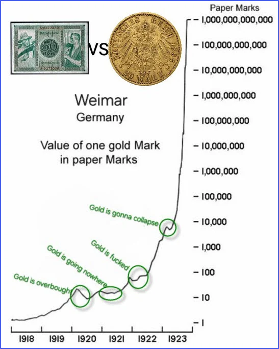When you look at long term gold charts in every currency they look like the one Dave posted. Countries like Argentina, Egypt and Turkey are already looking like Weimar Germany.